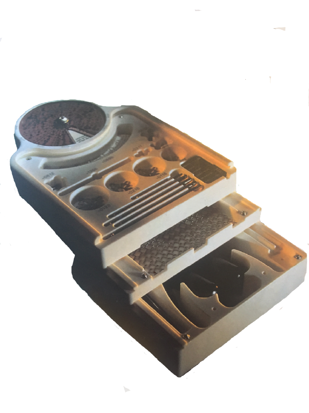 Contiene una completa selección de placas, tornillos y mallas de titanio, organizadas cuidadosamente, para lograr un máximo de eficiencia y fácil utilización.